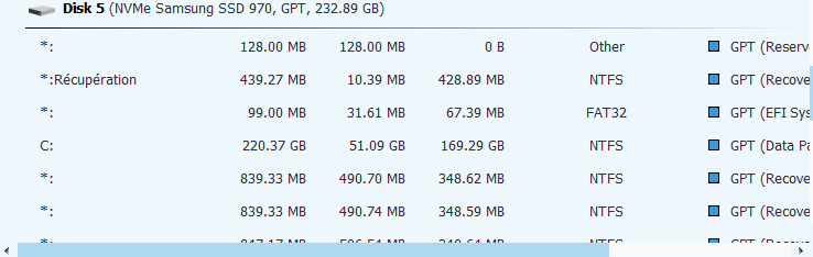 Pour un petit disque en GPT je vois tout de suite les drapeaux des partitions